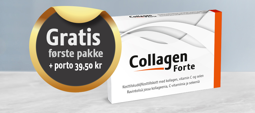 Nå kan du prøve det NYE kollagen produktet Collagen Forte gratis første pakke - kun kr 39 i porto.
